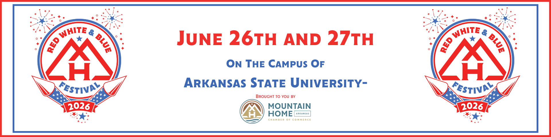The Red White & Blue Festival is a family-friendly, community festival set in the Ozark Mountains in Mountain Home, Arkansas. Over the years, the Red White & Blue Festival has become a tradition for locals and visitors alike. The Festival offers a parade, rodeo, car show, concerts, kids activities, food, fireworks, and more. The highlight of the Festival is an amazing fireworks display on Saturday night on the Arkansas State University campus. The Red White & Blue committee would like to thank Arkansas State University Mountain Home and Carter's Jewel Chest for their generous contributions towards the Red White & Blue Festival.